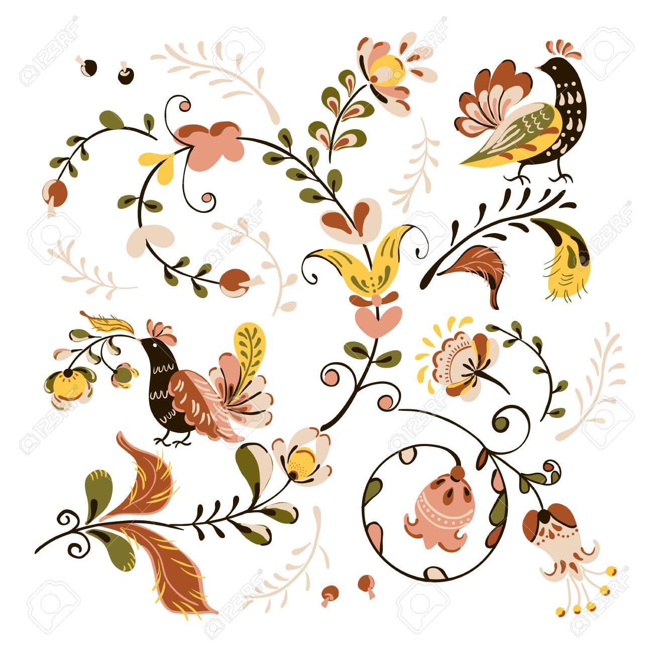 Flowers Birds Russian Vector Photo Free Trial Bigstock