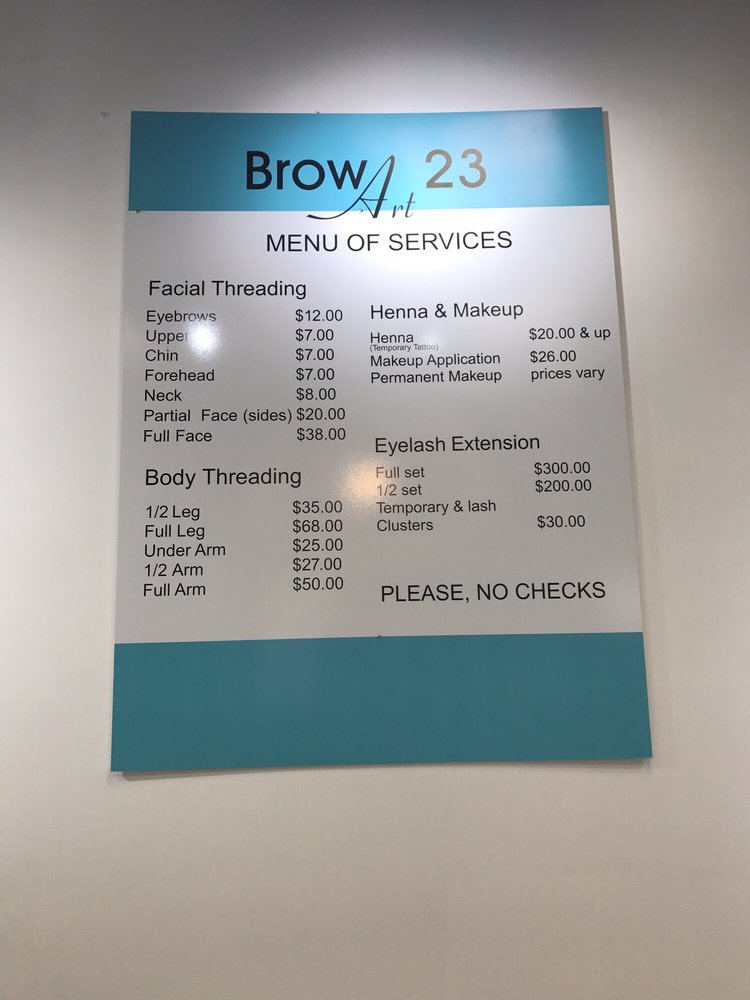 A consultation is required for more accurate pricing. The art of lecrue eyebrows, established in 2014, he focuses on the free form motion and sporadic thought as a creative process. Brow art 23 prices for henna & makeup: